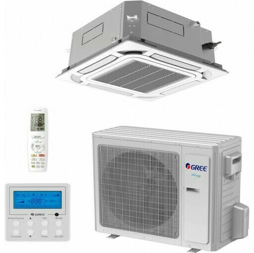 Сплит-система кассетного типа – это та же самая обычная классическая сплит-система за исключением внутреннего блока, в кассетной сплит-системе этот блок размещается под потолком. Выглядит он также по-другому. В остальном никаких отличий нет. Кондиционеры кассетного типа устанавливаются преимущественно в бизнес-центрах, офисах, квартирах на этапе застройки дома или ремонта помещения, в ресторанах, кафе, в административных учреждениях.